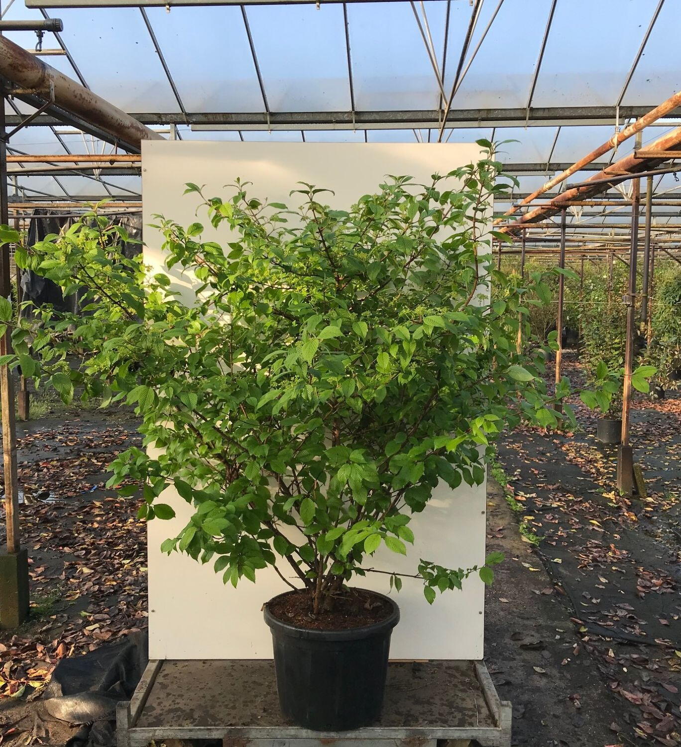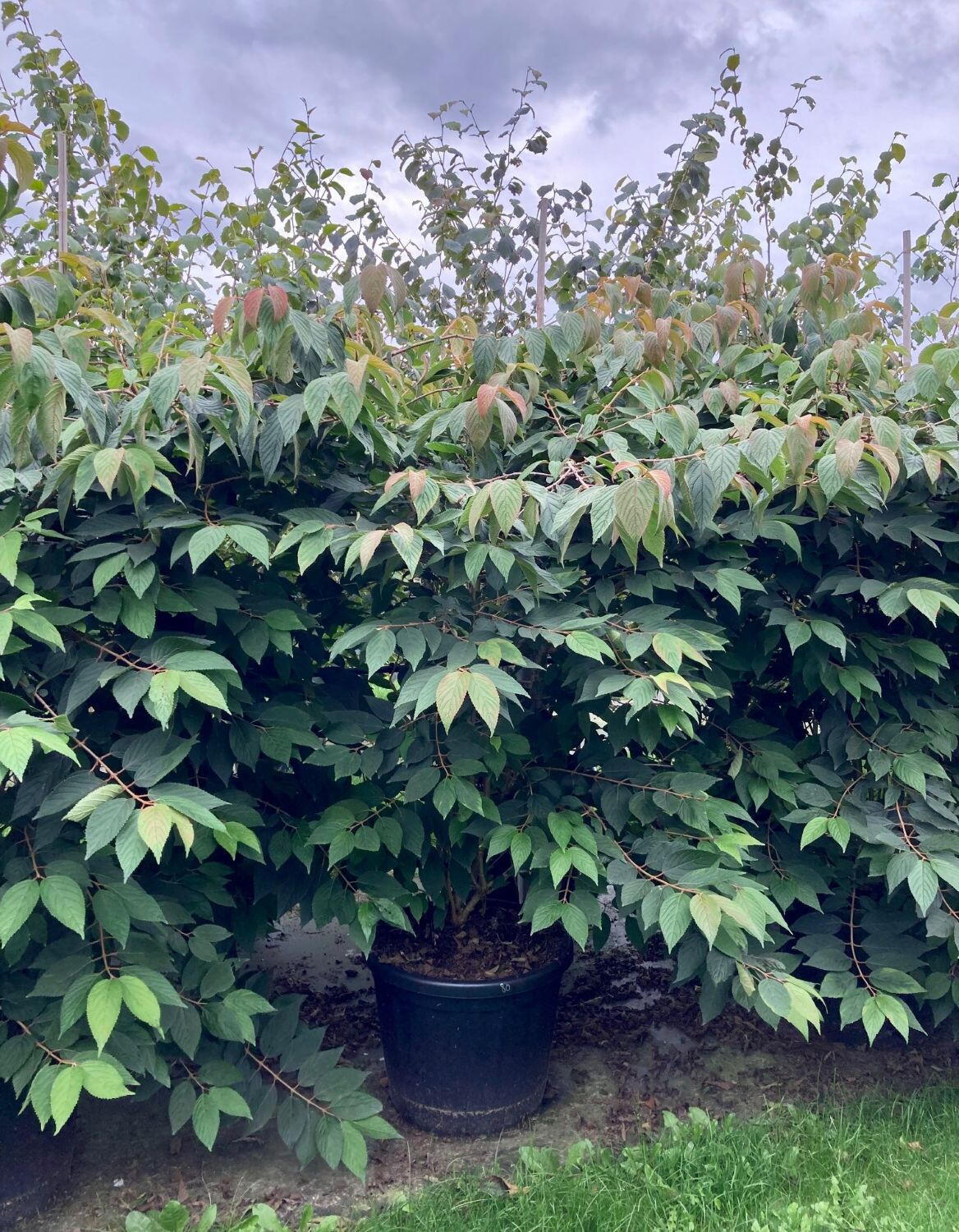 Other plants which would work well with the Viburnum Mariesii are the Pittosporum Tobira Nana Tree and Viburnum Tinus Trevor Eve.