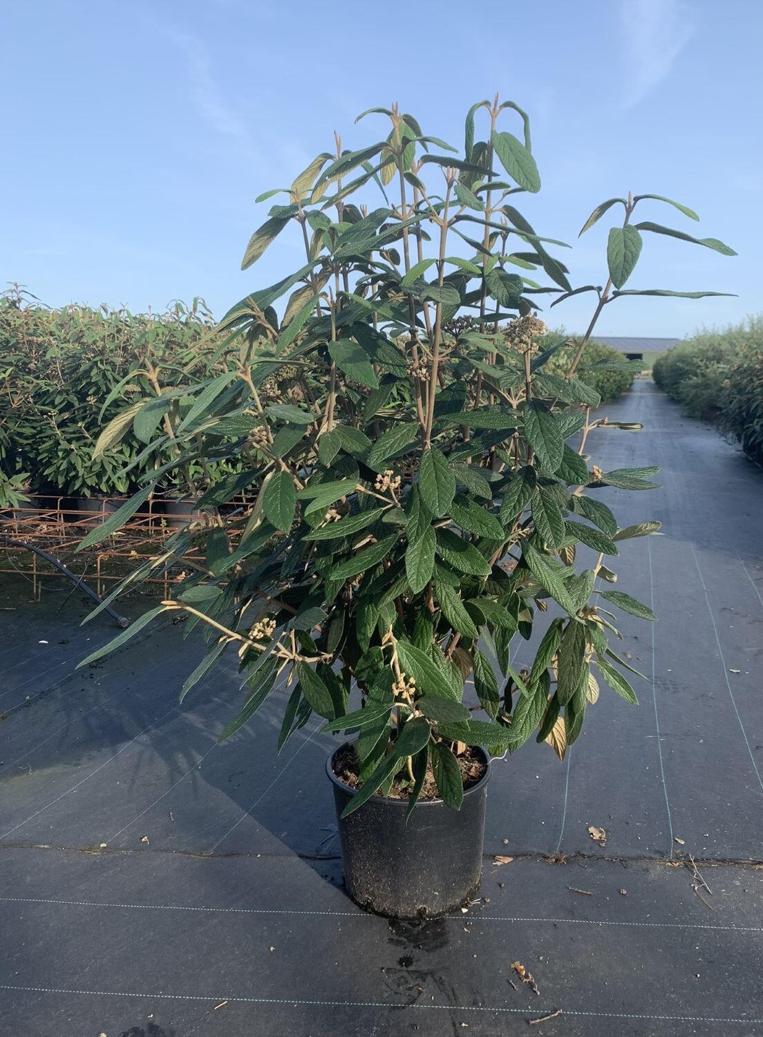 View plant size:Viburnum Rhytidophyllum, with the common name Leatherleaf Viburnum, is an evergreen garden stalwart which provides reliable year-round foliage and spring flowers. You will find it an excellent background or hedging shrub in a large or small garden.