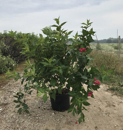 Undemanding and lovely, Weigela Red Prince is a deciduous flowering shrub that is prized for its small compact habit and charming blossoms. A great choice both for beginners and experienced gardeners, this variety will add a burst of colour to your garden in the late spring, and attract bees and other beneficial pollinators. Good candidate for mass planting and mixed shrub borders. This is considered a small shrub that should not exceed 1.5 metres.